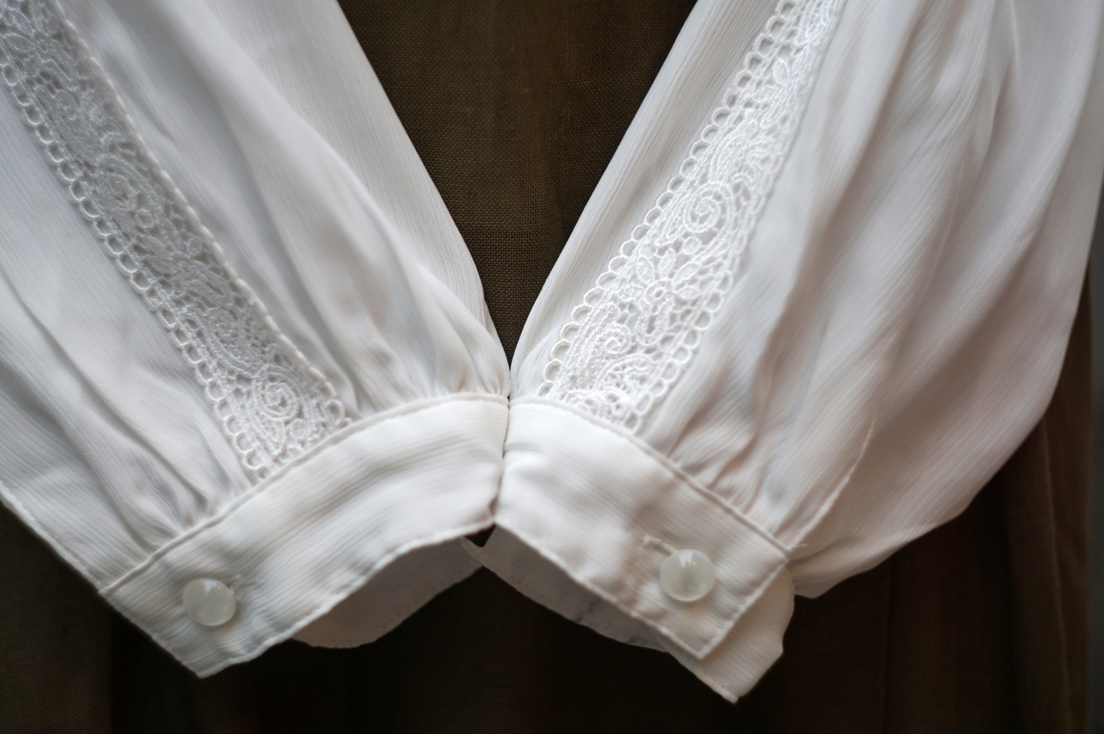 "SAISON DE ELE" 無地 白 長袖 ブラウス レギュラーカラー レース[20359]