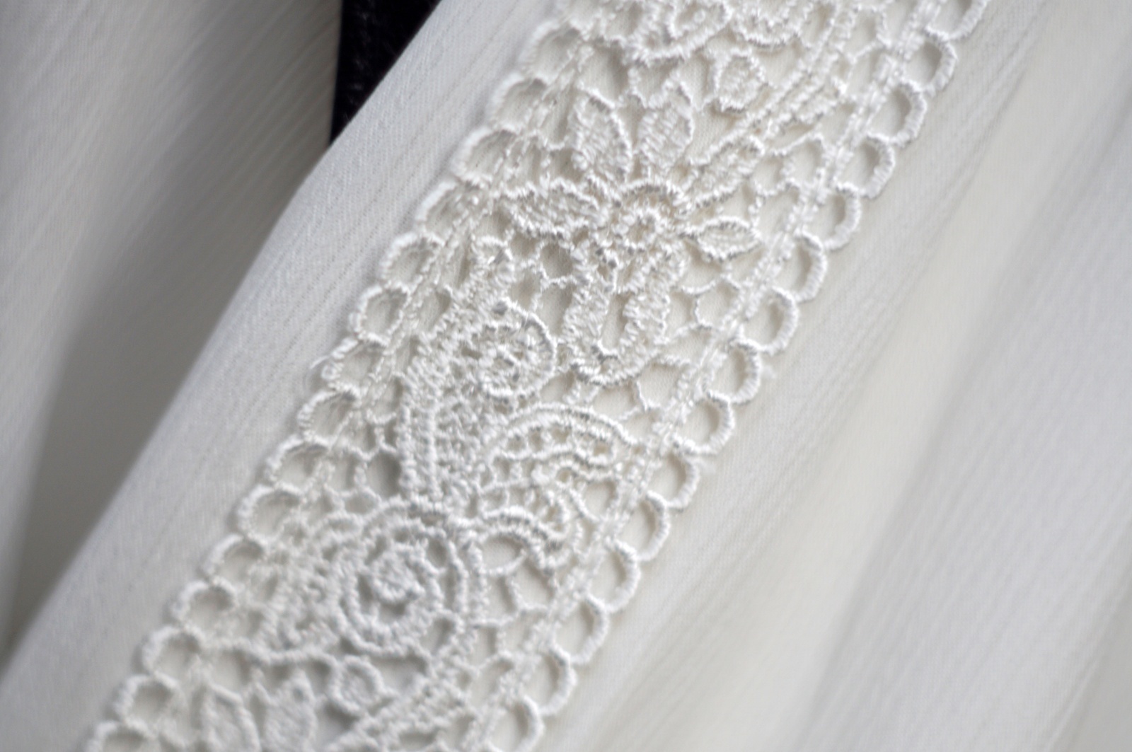 "SAISON DE ELE" 無地 白 長袖 ブラウス レギュラーカラー レース[20359]