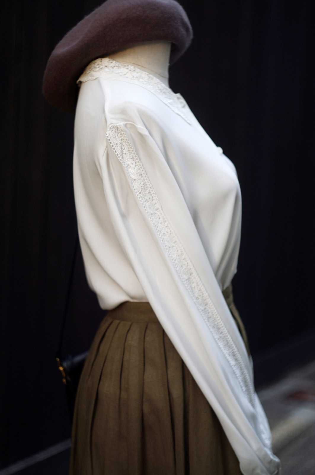 "SAISON DE ELE" 無地 白 長袖 ブラウス レギュラーカラー レース[20359]
